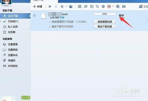 接着,暂停任务后,这时我们再把鼠标定位到这个已经暂停下载的任务上。