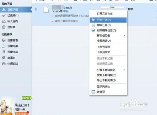 出现这个提示的时候,我们将鼠标放到该下载任务的位置上并右键。