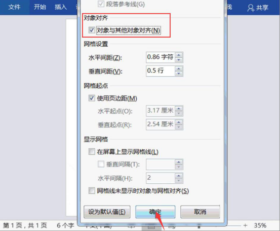 7.在网格设置窗口中,勾选“对象与其他对象对齐”,并点击“确定”按钮。