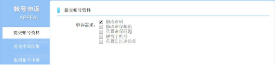 2.然后,进入快玩游戏盒的账号申诉的资料填写页面,先选择申诉需求的类型。