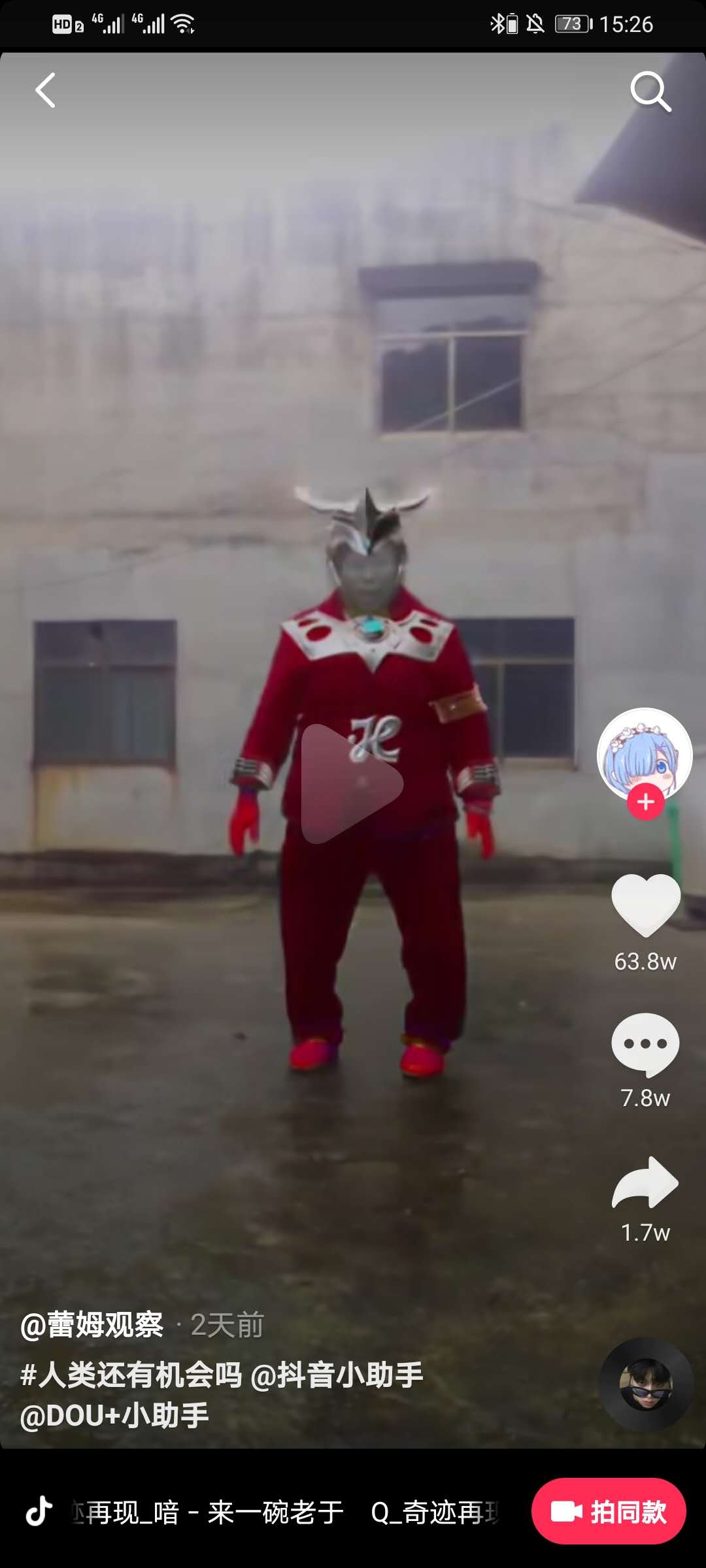 此梗是由蕾姆观察点赞数最多发布,在视频中博主播放了几段人类看不懂甚至是正常人都看不懂的段子组成,再配上网抑云版《奇迹再现》,人类还有希望吗的聚网气氛瞬间有了。