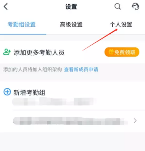 进入考勤打卡服务页面,点击右下角的设置选项,在设置界面中点击【个人设置】选项,