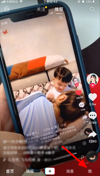 1、打开手机中的抖音短视频APP,在下方的功能栏中点击【我】;