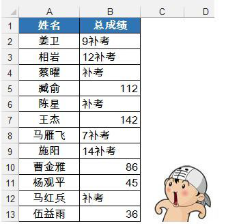 3、这是就会发现表格中的所有“0”都替换为“补考”,是不是很坑?