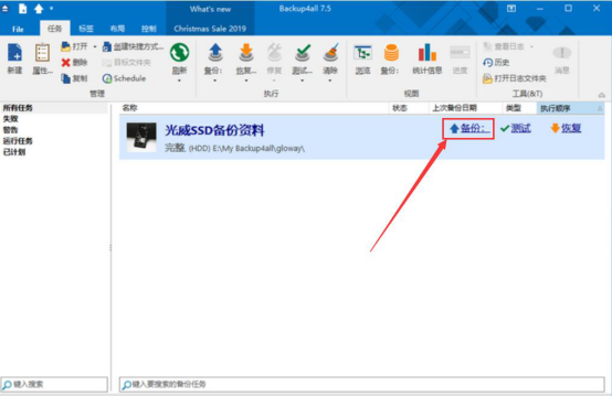 7.回到Backup4all Lite的主界面,可以看到自己创建的备份任务,点击“备份”蓝色字眼,Backup4all Lite便开始备份数据。