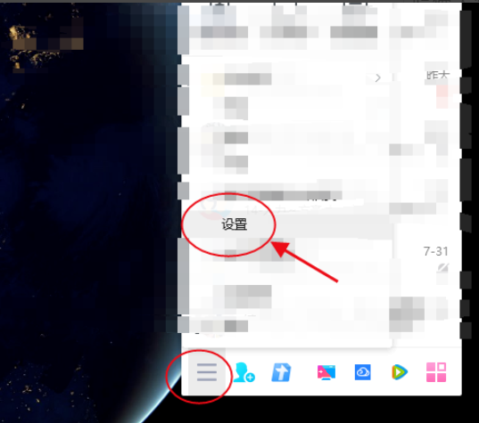 如果你是使用QQ账号登录游戏,就在电脑中打开QQ,进入面板,点击【主菜单】——【设置】,