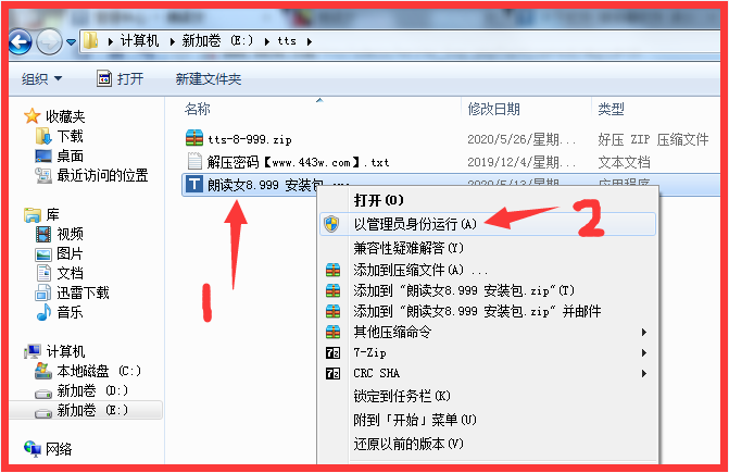 3、下载朗读女软件安装包并解压到【tts】文件夹中。