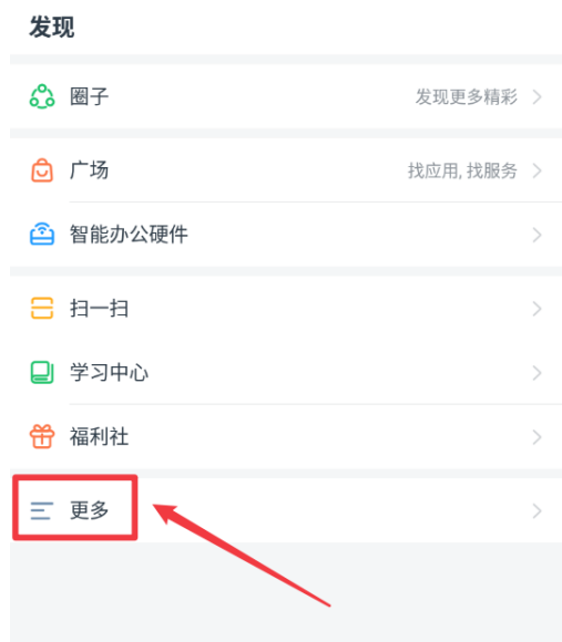 在手机中打开钉钉APP,登录账号,进入软件界面,点击下方的【发现】,然后点击【更多】选项,