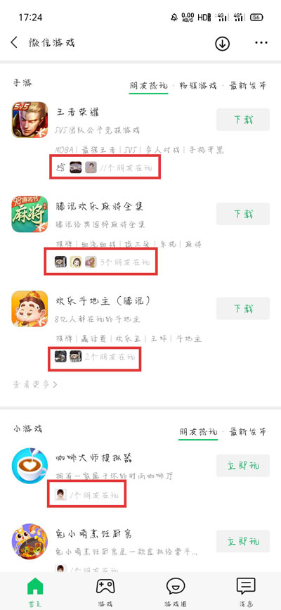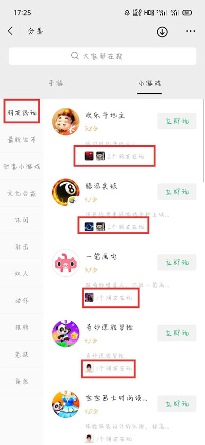 4、切换到【小游戏】同样可以看到好友在玩的小游戏;