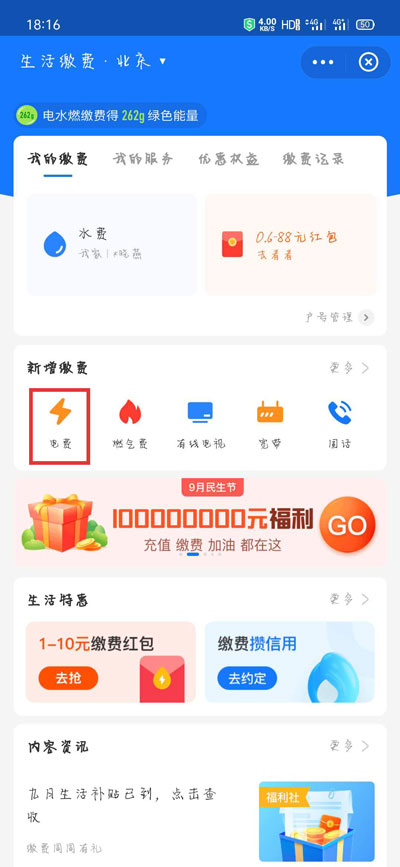2、然后选择【生活缴费】服务;