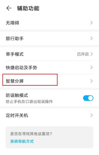 进入以下界面,如图,点击【智慧分屏】,打开智慧分屏功能,