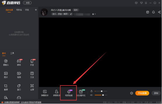 1.首先,开启斗鱼直播伴侣,在它的视频直播预览区域的下方,点击“视频连麦”按钮。