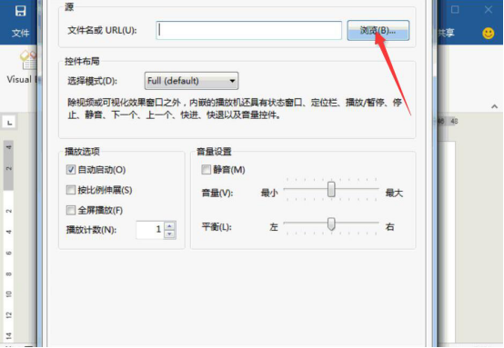 5.完成上一步后,我们来到视频播放器的自定义窗口,点击“浏览”按钮。