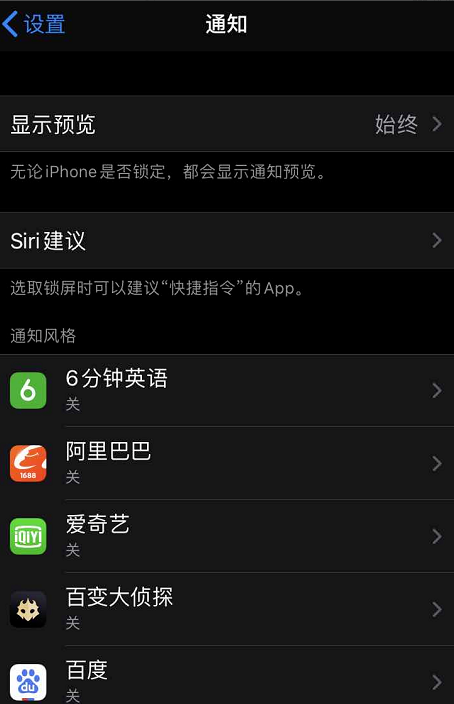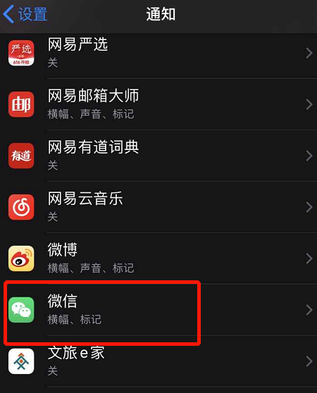 进入通知页面,可以查看全部软件的通知设置情况,找到微信,点击进入,