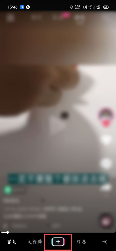 5、打开抖音短视频,在首页点击下方的【+】进入拍摄视频创作页面;