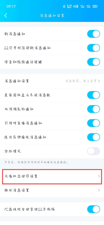 4、接着在下方选择【头像双击动作设置】一项,设置头像双击之后是拍一拍还是戳一戳;