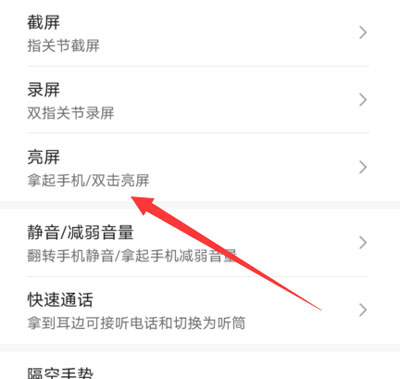 3、接着选择【亮屏】设置,设置拿起手机、双击屏幕亮屏;