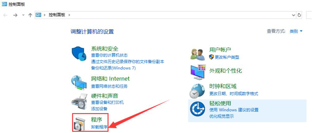2、在控制面板中点击“程序”。