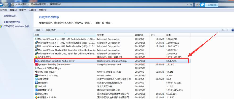 8、Win10成功安装杜比音效驱动后,我们可以回到“程序和功能”页面,便可以看到杜比音效的声卡驱动了,如下图。