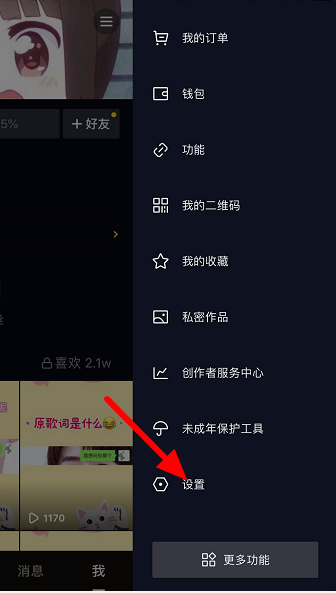 出现侧边弹窗,如图,点击【设置】选项,