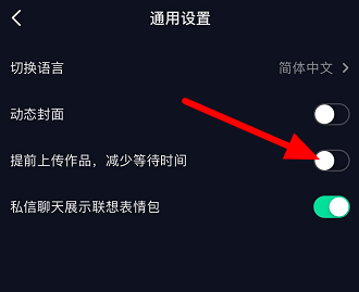进入设置界面,点击【通用设置】,然后选择【提前上传作品,减少等待时间】,打开这一选项,