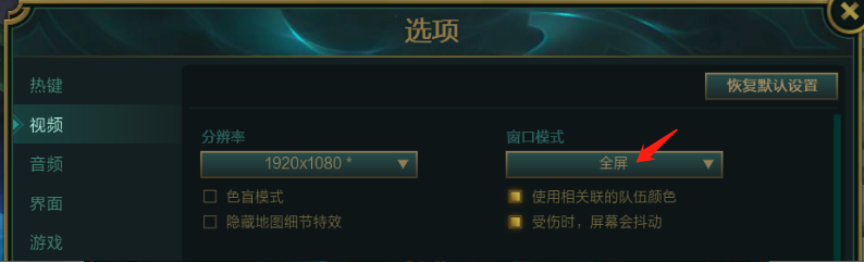 1、以英雄联盟为例,首先将窗口模式改为全屏。