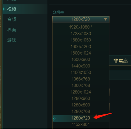 2、然后将游戏分辨率调低,一般调整为1280X720是比较适宜的。
