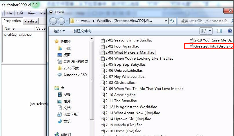 2、点击上方菜单栏中【文件】(File),在其下拉菜单中选择【打开】(Open),然后在浏览窗口中选择一个本地歌曲,比如这里选择【Greatest Hits...】,接着点击窗口中的【打开】。