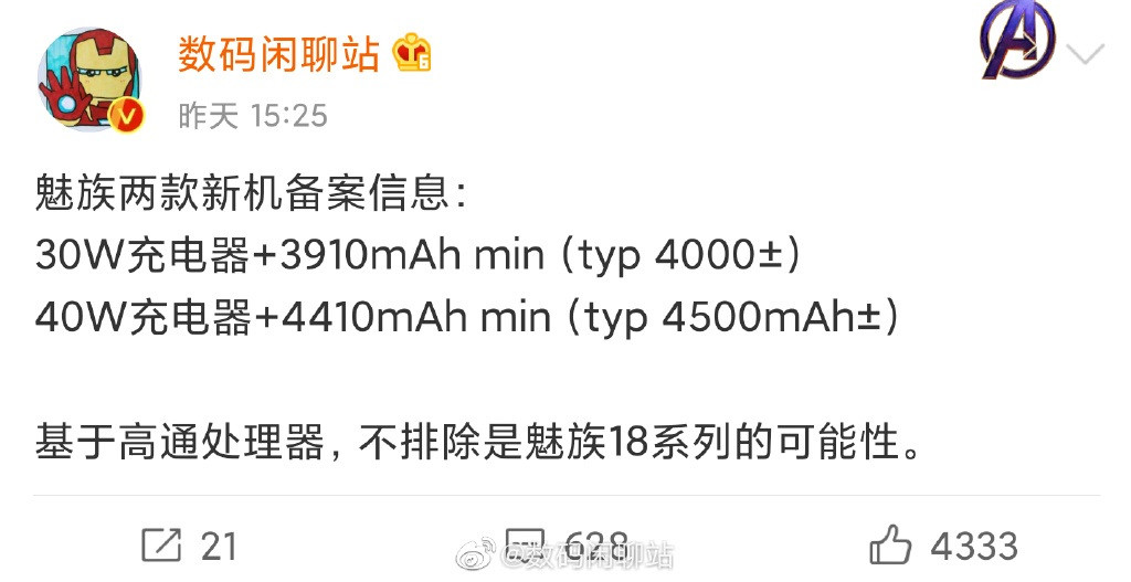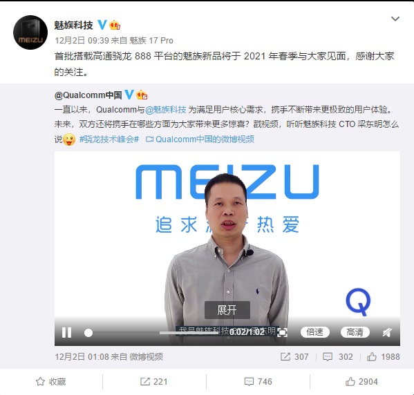 知名微博博主 @数码闲聊站爆料,魅族迭代的骁龙 888 旗舰产品——魅族 18 系列已于近期正式入网。据悉,这次魅族 18 系列的上市时间会早很多,有望最快在今年第一季度上市,和各大厂商同台较量。