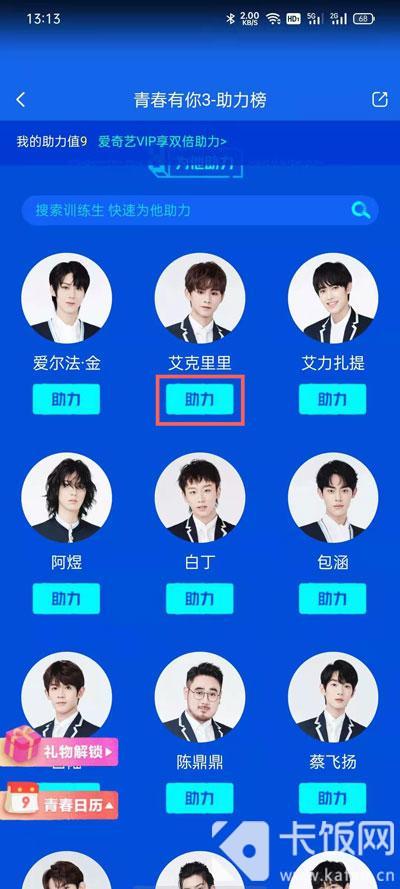 4、下滑找到你想要助力的练习生,点击下方的【助力】,每助力一次会消耗1个助力值;