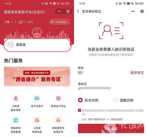 3.在中国政务服务平台上,首先登录自己的账号,完成人脸识别验证后进行下一步操作;