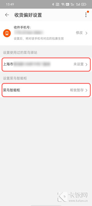 4、选择【菜鸟驿站】一项,进入设置菜鸟驿站存放选项;