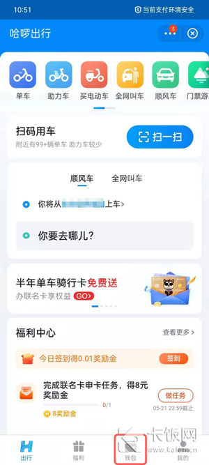 1、打开手机上安装的哈啰出行app,也可以通过支付宝哈啰出行小程序进入,app和小程序操作都是一致的;