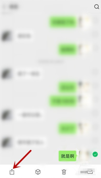 勾选转发的消息,点击左下角的“转发”按钮,