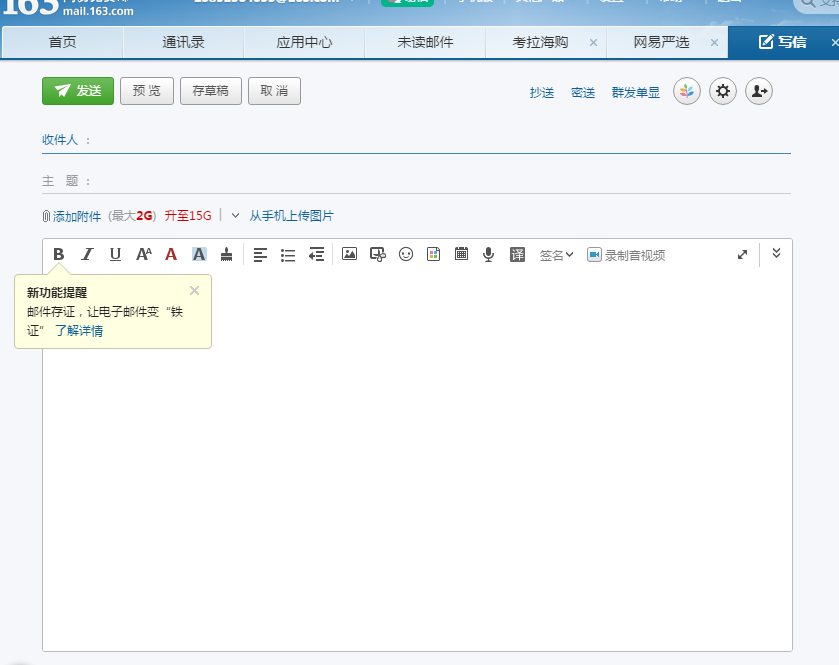 2. 同样写入收件人,注意格式。