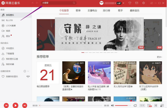 2. 然后,在网易云音乐的搜索框中输入自己想要下载到本地的歌曲名称。