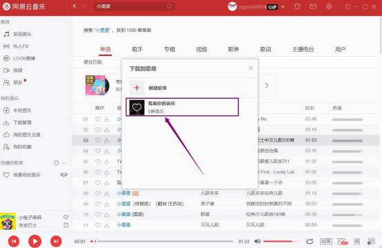 4. 此时,会弹出如下图窗口,用户点击“我喜欢的音乐”,网易云音乐便开始下载该歌曲到本地。
