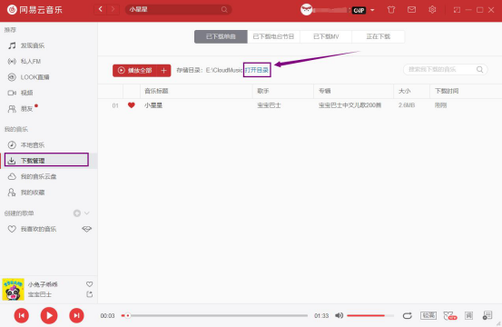 6. 接着,我们在网易云音乐的左侧菜单中点击“下载管理”,并在右侧点击“打开目录”。