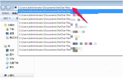 3. ->打开我的电脑->复制的路径粘贴到地址栏中,->微信电脑版文件的保存位置。
