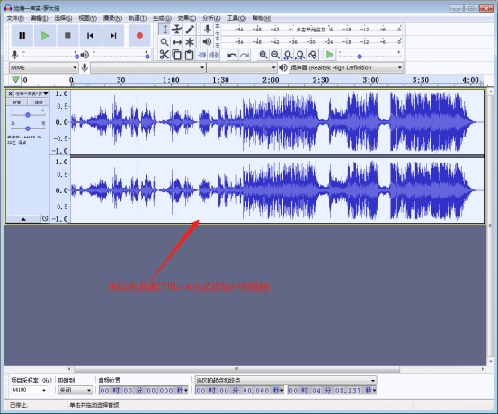 3. 使用快捷键“Ctrl+A”全选音轨中的歌曲。