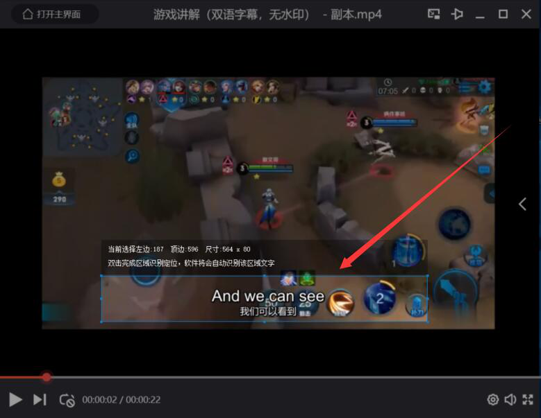 2. 然后,我们打开想要提取字幕的视频,并按住鼠标左键选取要提取视频字幕的位置,再双击完成区域识别定位。