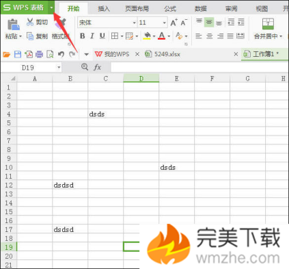 2. 接着,我们在最左上角找到 WPS 表格,当然如果你用的是 office 也是一样的,然后我们点击下拉的那个小三角,如下图所示: