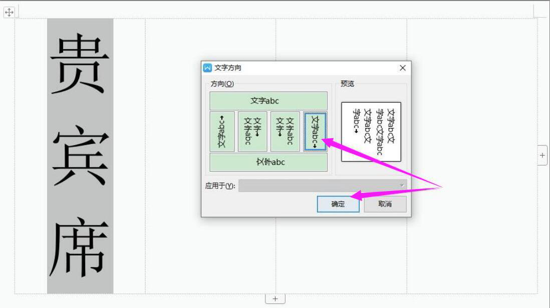 9. 弹出文字方向窗口,同样的,我们应用正确的文字方向,再点击“确定”按钮。