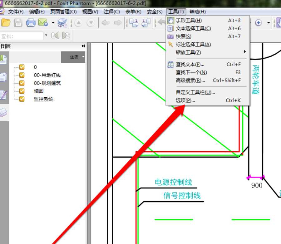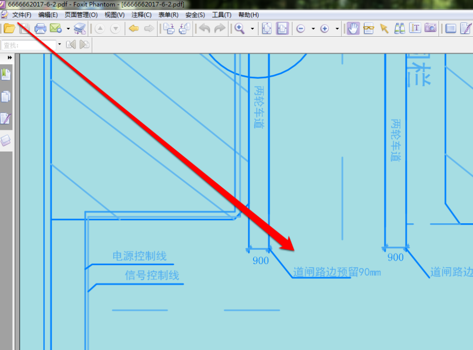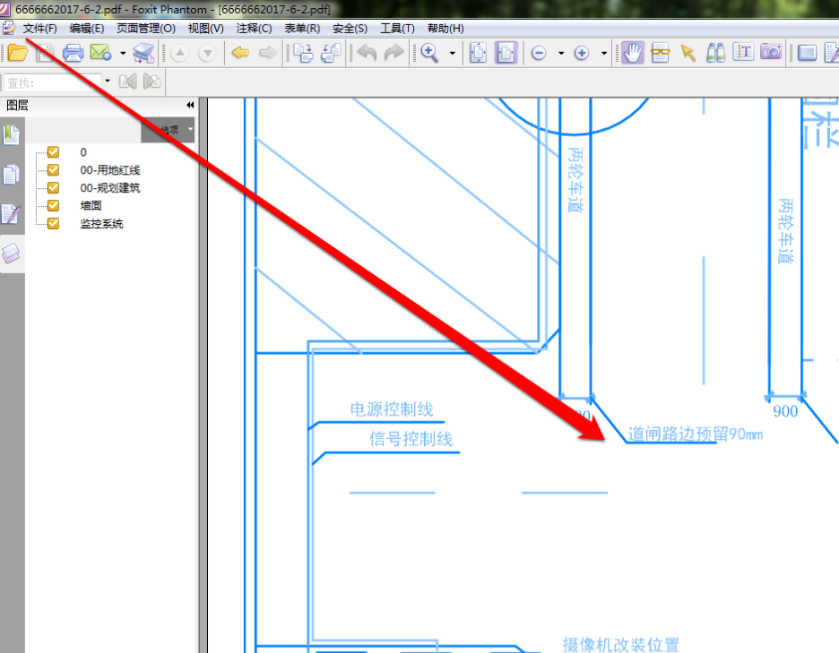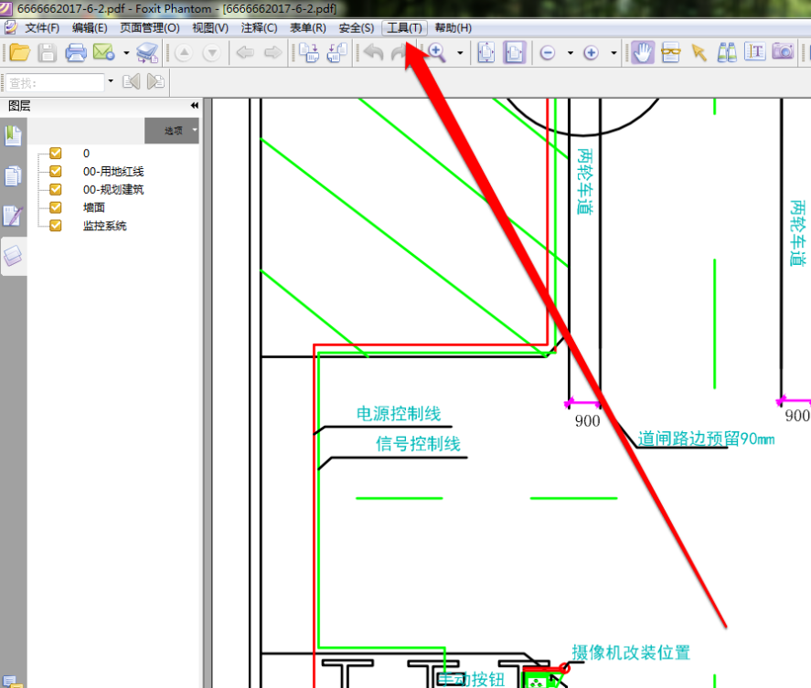 我们使用 PDF 工具,将准备好的 PDF 图纸在 PDF 工具中打开,这张 PDF 图纸为彩色的,我们点击工具按钮。