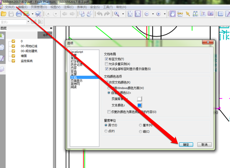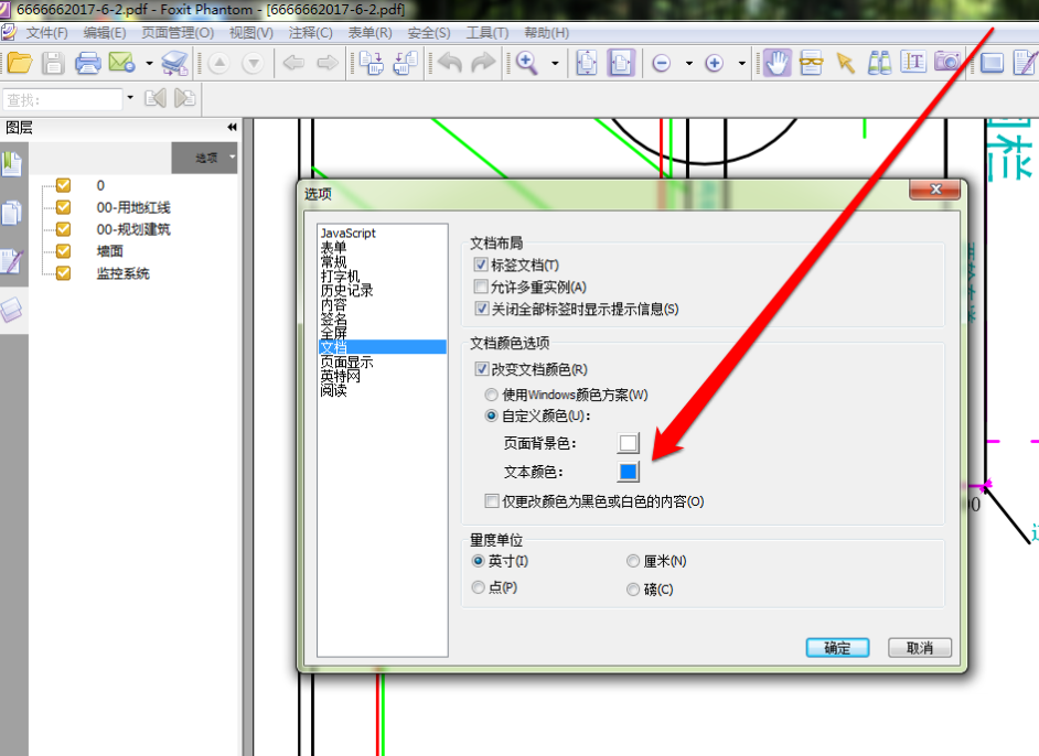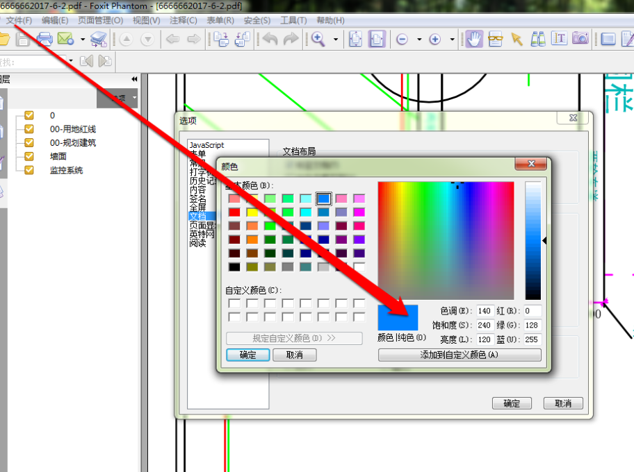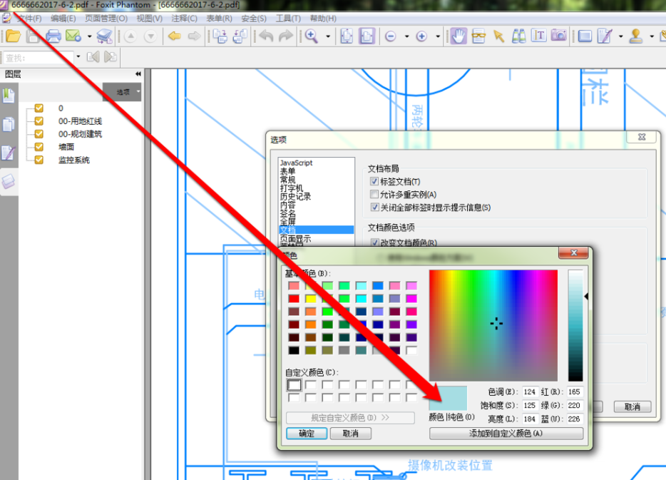 接下来,我们再点击选项按钮,设置 PDF 图纸的背景为蓝色。