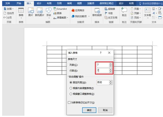 1. 打开 Word 文档,在“插入”菜单中,选择“表格”->插入表格”,插入一个7行、7列的表格。
