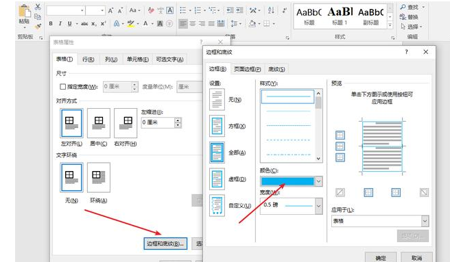 6. 全选表格,单击鼠标右键,选择“表格属性”->“表格”->“边框和底纹”,将边框设置成自己喜好的颜色。