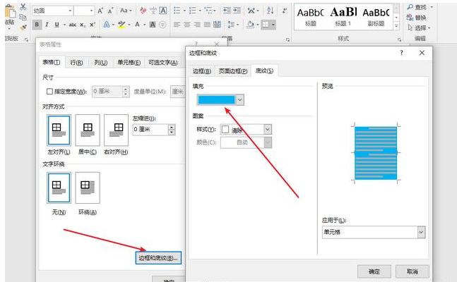 7. 将第一行和第二行底纹设置成同样的颜色。