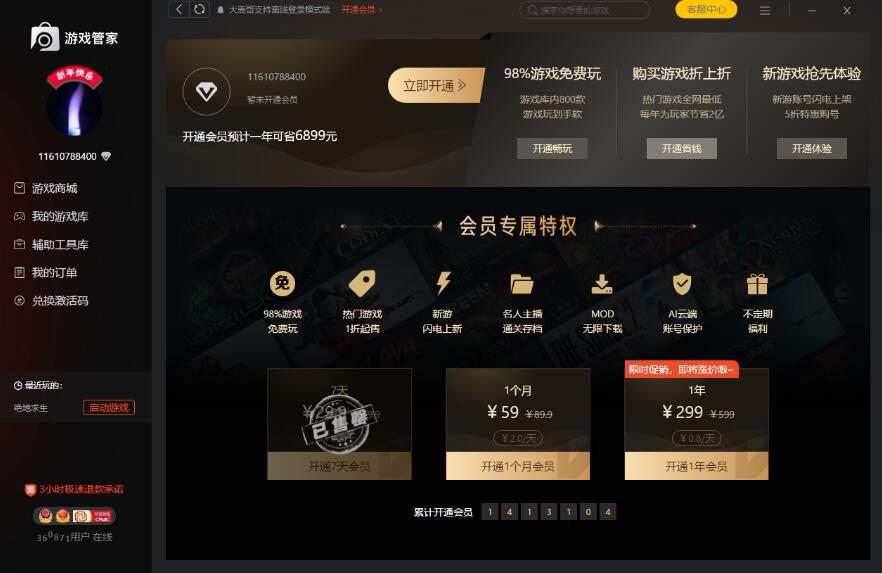 Steam 游戏管家和 Steam 还有一个区别,就是它们的会员福利上有些不同。Steam 游戏管家的会员可以免费玩 3 A 游戏,Steam 是一次性购买便可以终身使用。