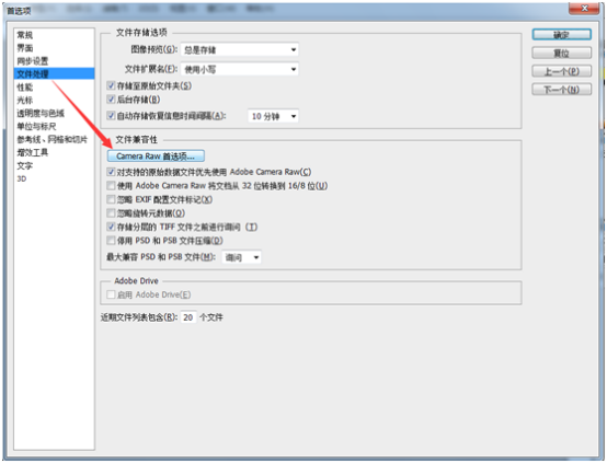 然后点击"文件处理"——"Camera Raw 首选项",